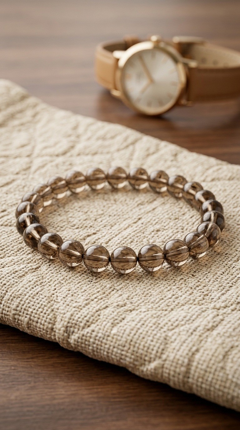 Bracelet Quartz Fumé, Pierres Naturelles, Chakra Racine, Cadeau Unisexe, Domidora