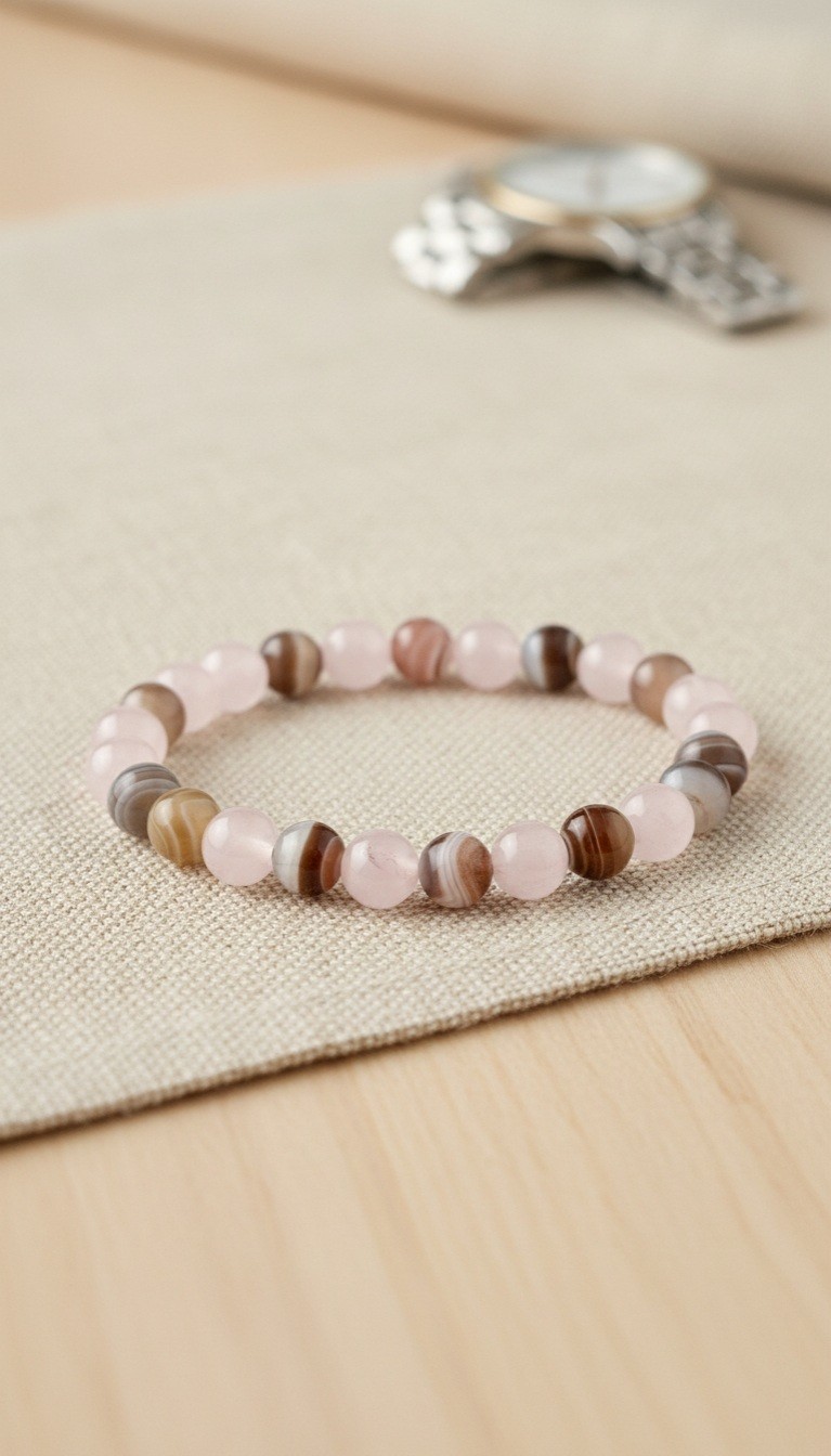 Bracelet Quartz Rose et Agates, Pierres Naturelles contre la solitude, la tristesse, Cadeau fait mains pour Elle, Domidora
