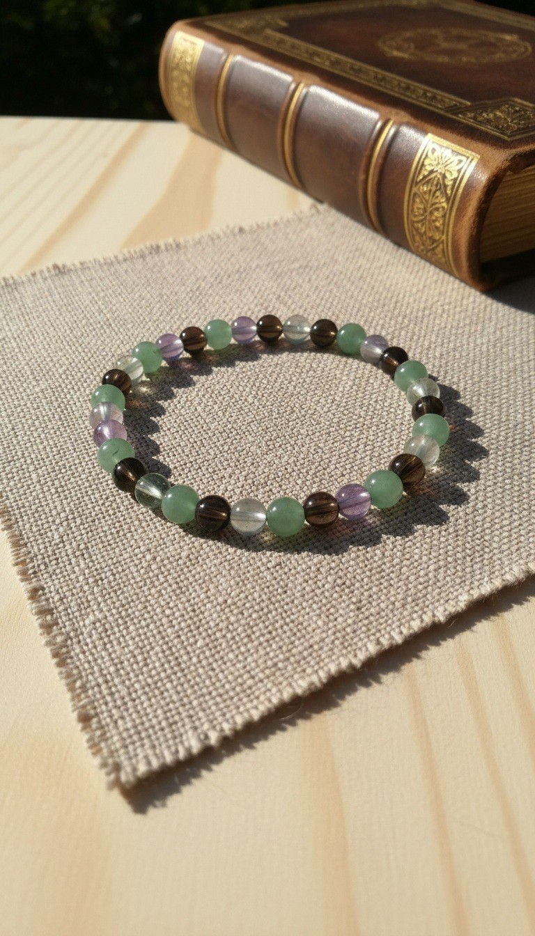 Bracelet Fluorine et Quartz Fumé, Bracelet en Pierres Naturelles Cadeau Unisexe, Domidora