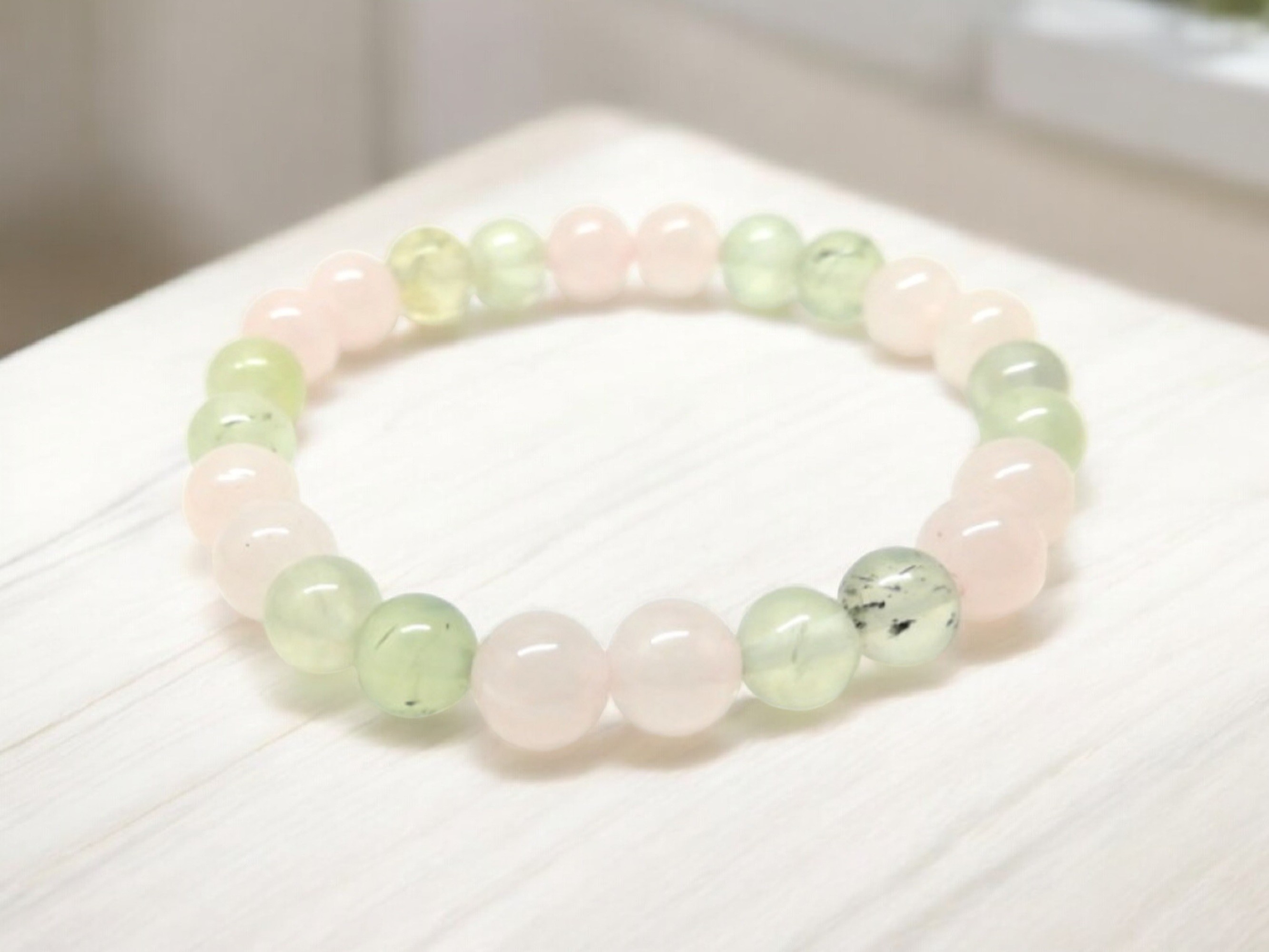 Bracelet cauchemar et angoisse enfant en pierres naturelles quartz rose et préhnite