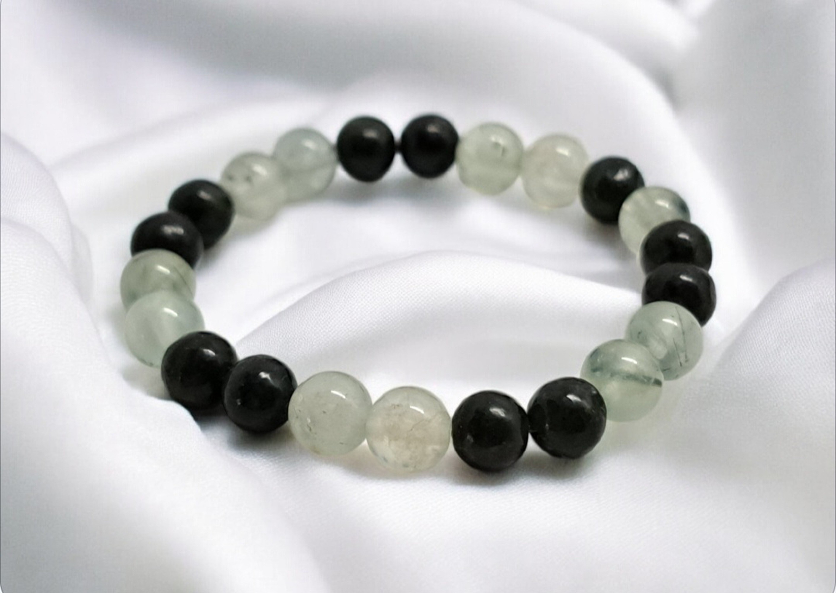Les jeunes enfants apprécieront ce bracelet en pierres naturelles jade nephrite et préhnite.