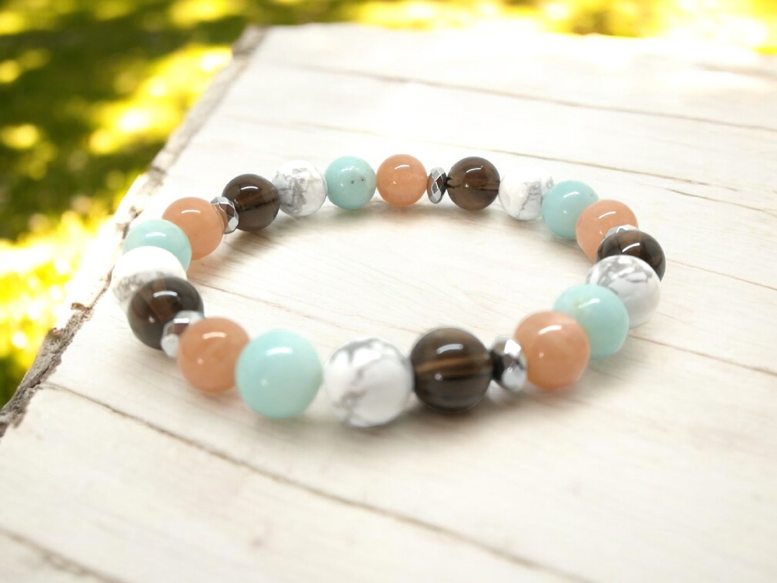 Bracelet Optimisme et Joie de Vivre en Pierres Naturelles - Pierre de Soleil et Amazonite