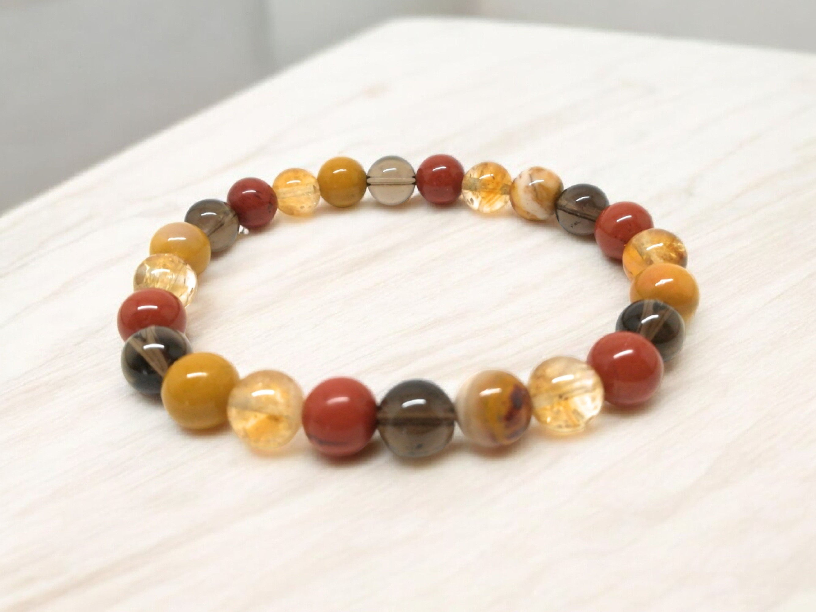 Bracelet prise de décisions en Mookaite, citrine et jaspe rouge , pierres naturelles pour maman solo débordée