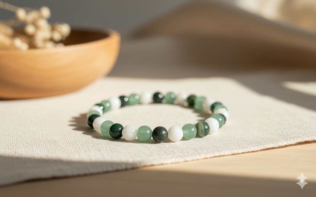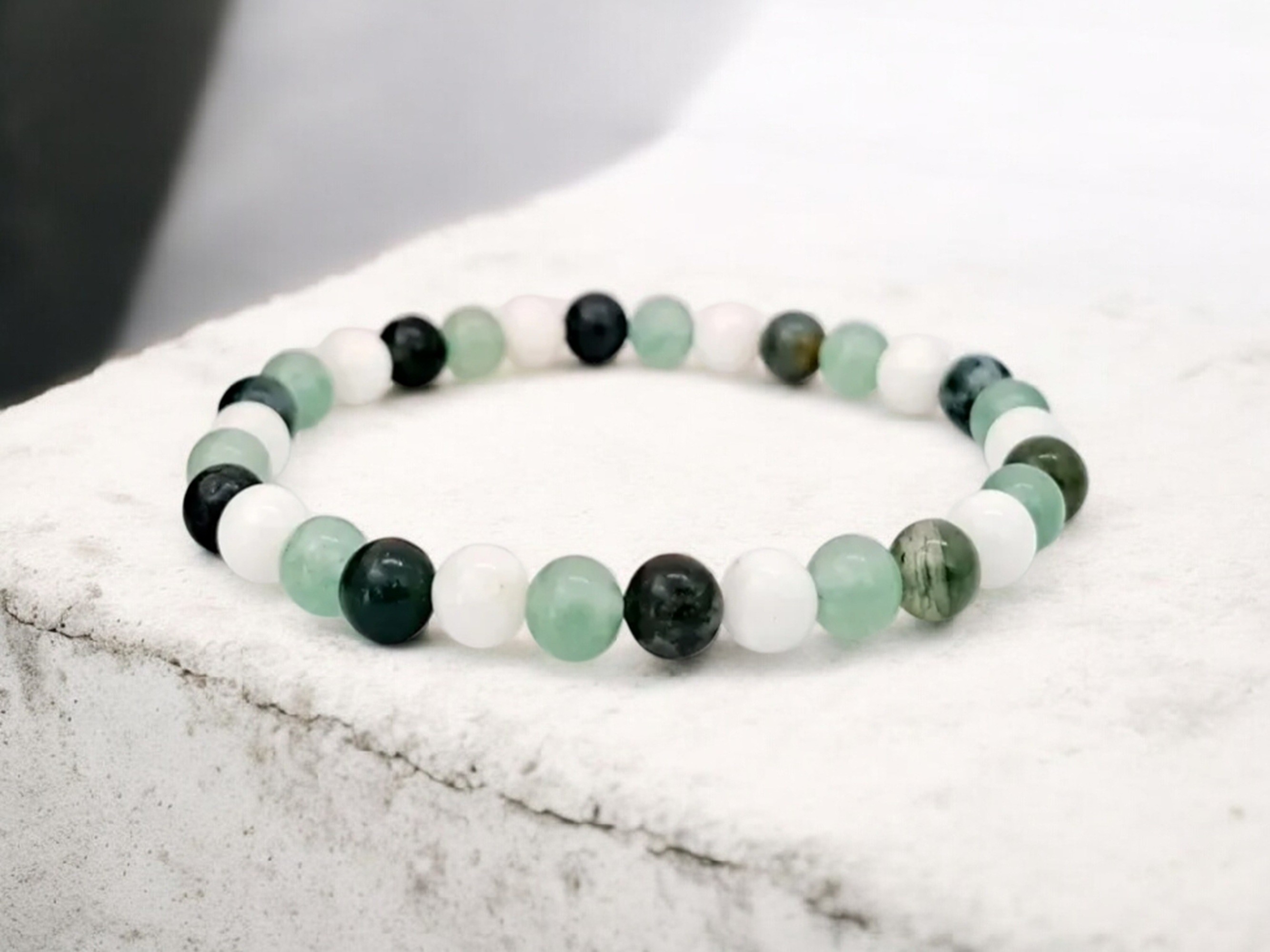 Bracelet en pierre de lune, aventurine et agate mousse pour accompagner un nouveau départ, de nouveaux projets