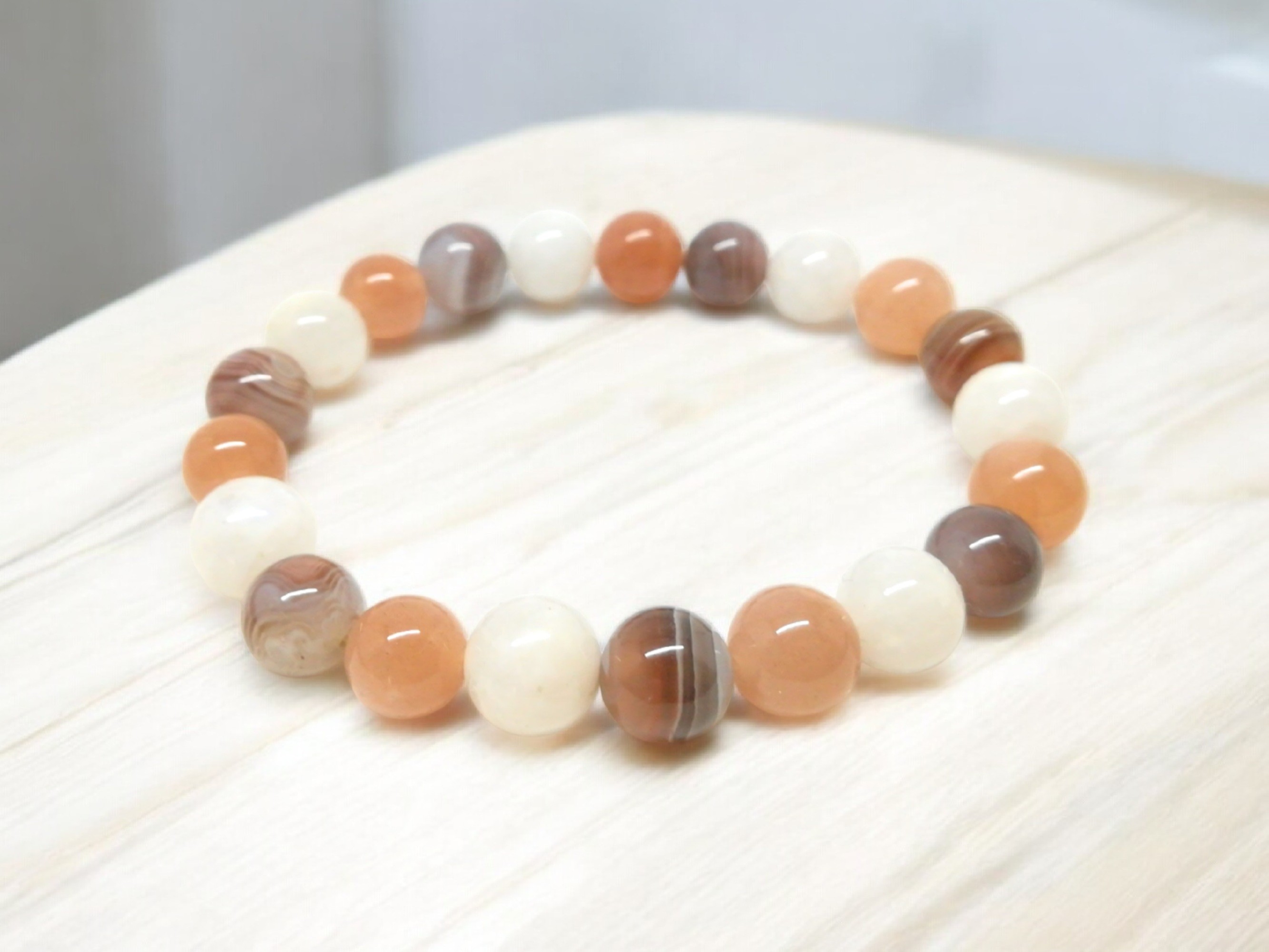 Bracelet bonnes résolutions, pierres naturelles agate Bostwana et pierre de soleil