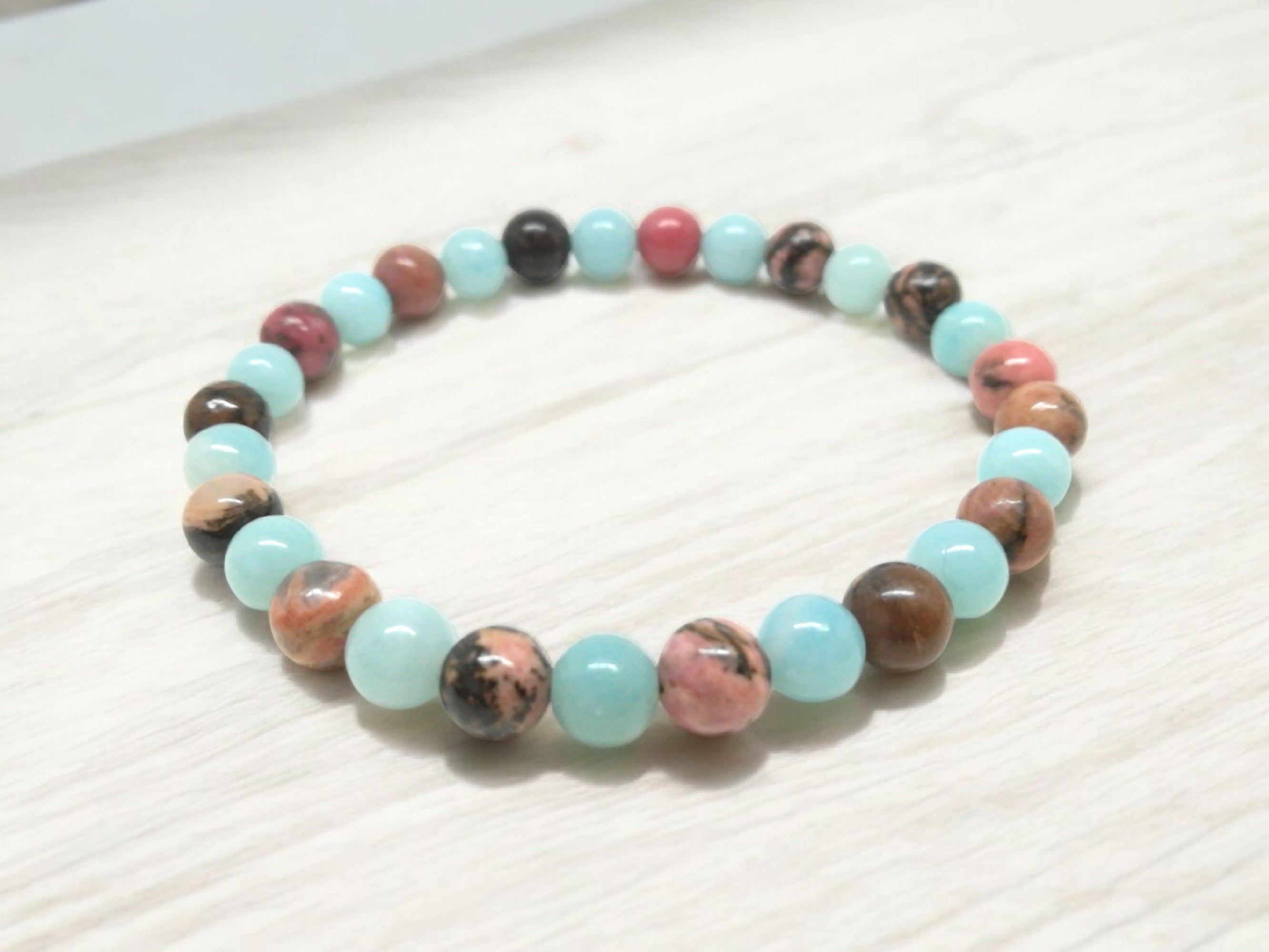 Bracelet Stress Examen Adolescence, Pierres Naturelles Rhodonite et Amazonite, pierres 6mm