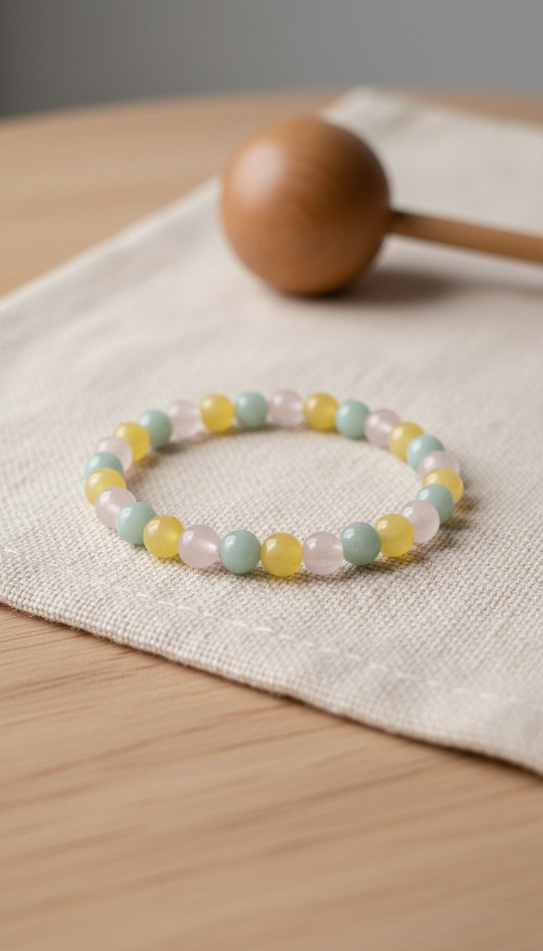 Les petites filles vont adorer ce bracelet pastel avec des pierres naturelles qui peuvent aussi être portées par les adultes.