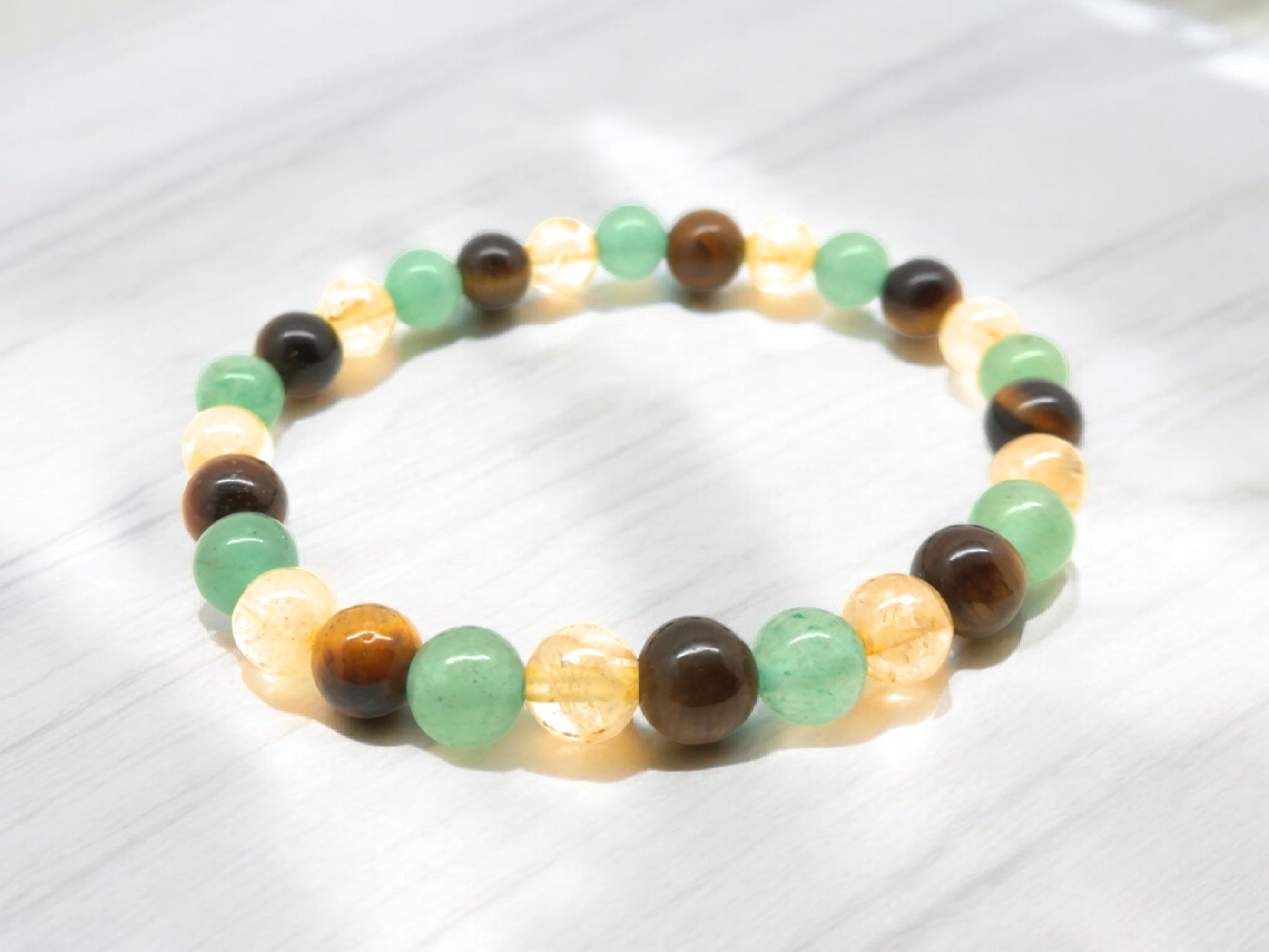 La citrine apporte son côté énergique et motivant, complété par la protection de l'oeil de tigre.