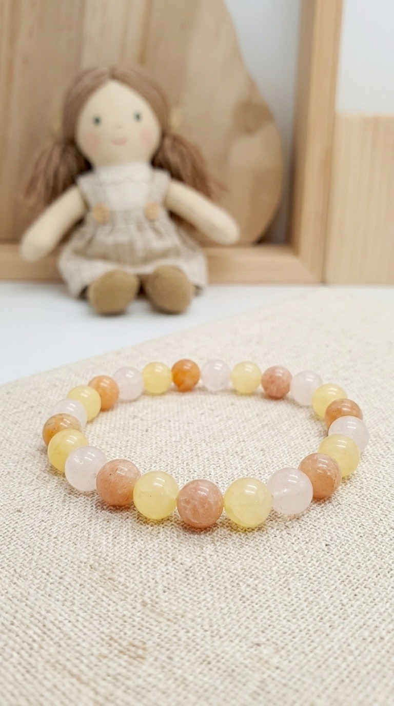 Ce bracelet en pierres naturelles douces et rassurantes convient aux enfants et aux adultes.