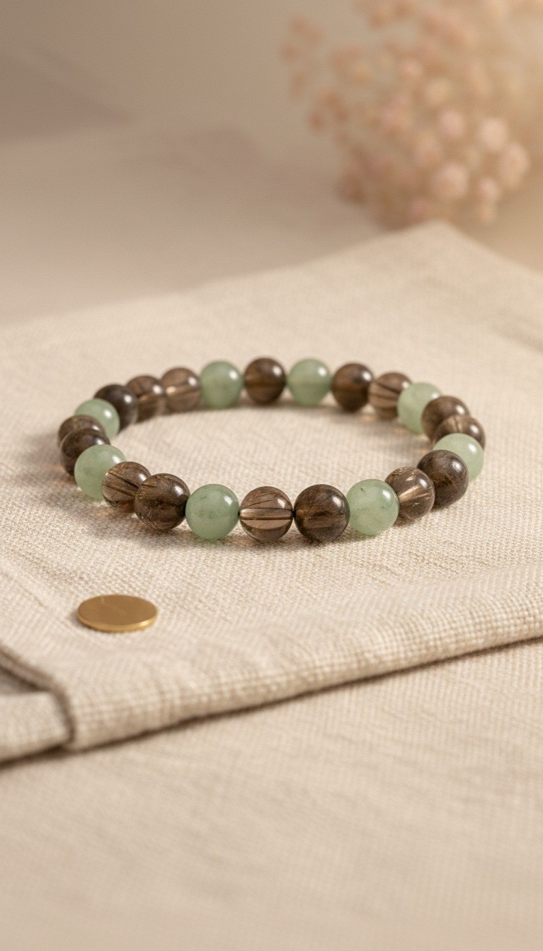 Bracelet mal de dos en aventurine et quartz fumé, cadeau homme