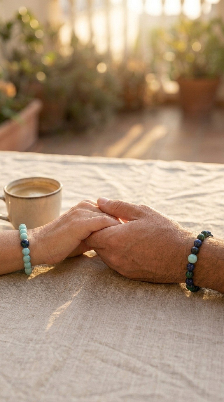 Bracelets distance pour couples en azurite et amazonite, chakra du coeur, cadeau papâ