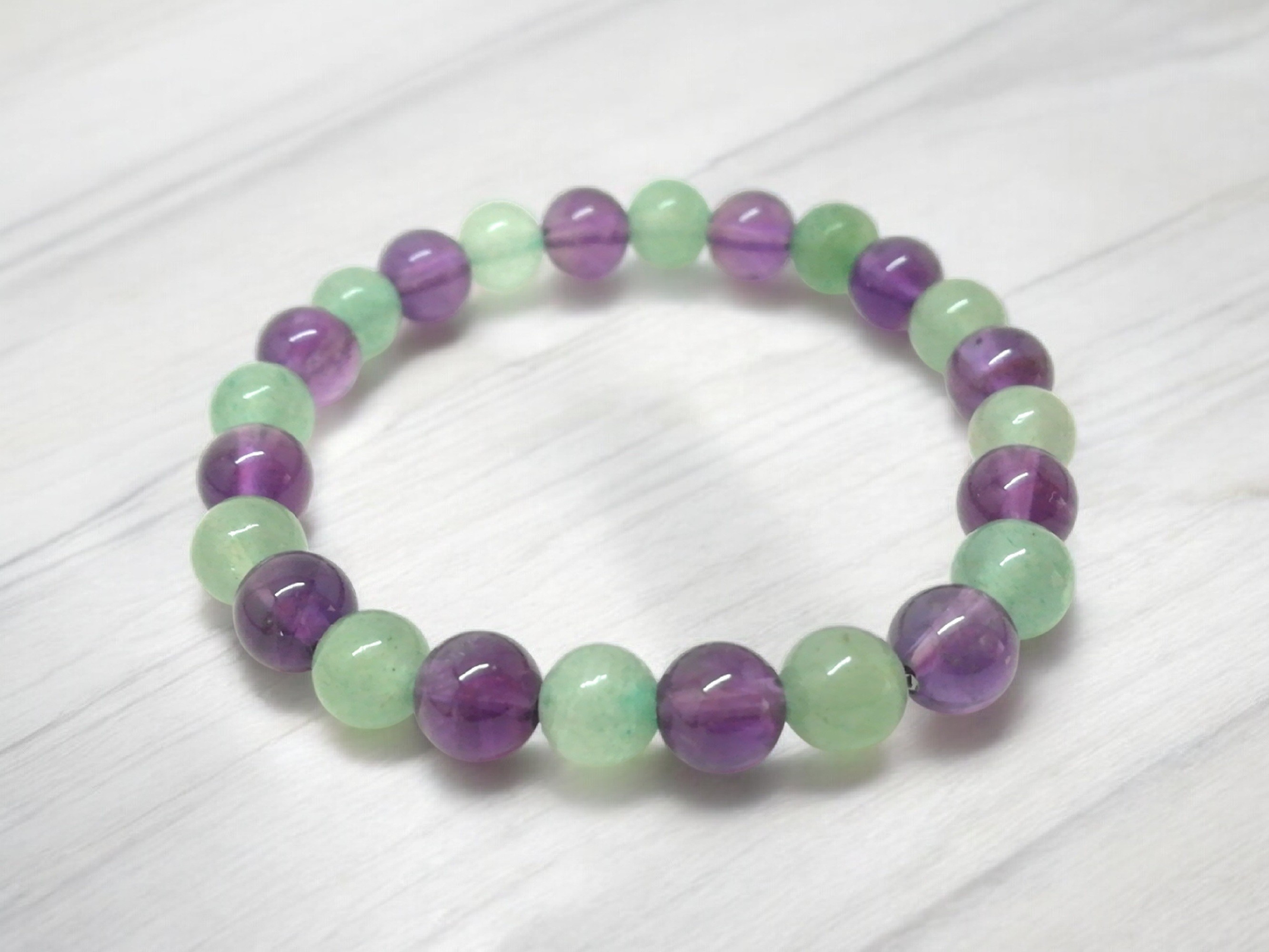 Bracelet concentration enfant en Aventurine et Amethyste, Pierres Naturelles pour cadeau unisexe.