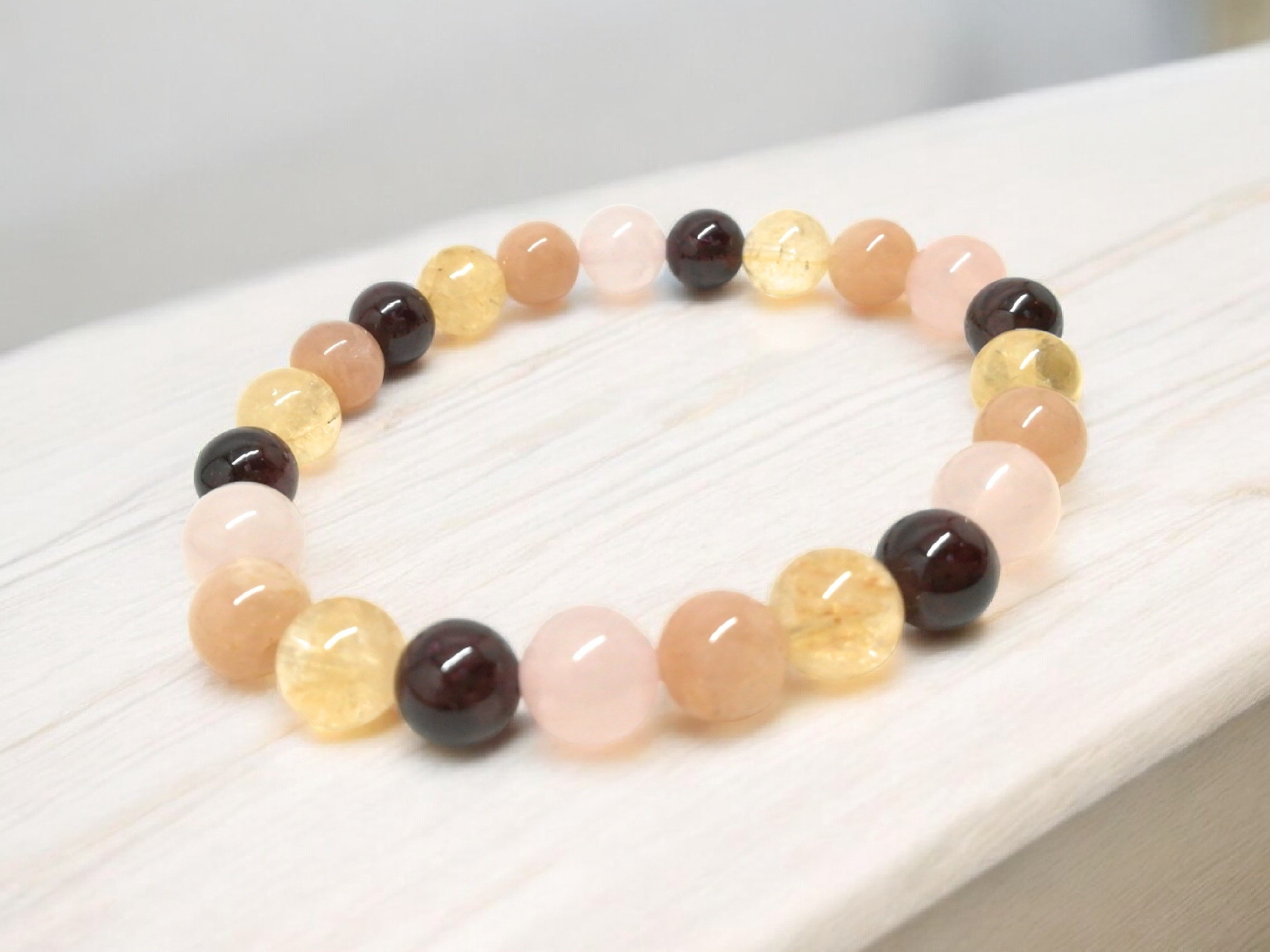 Bracelet Anti-Fatigue et Énergie en Pierres Naturelles - Citrine, Grenat, Quartz Rose et Pierre de Soleil