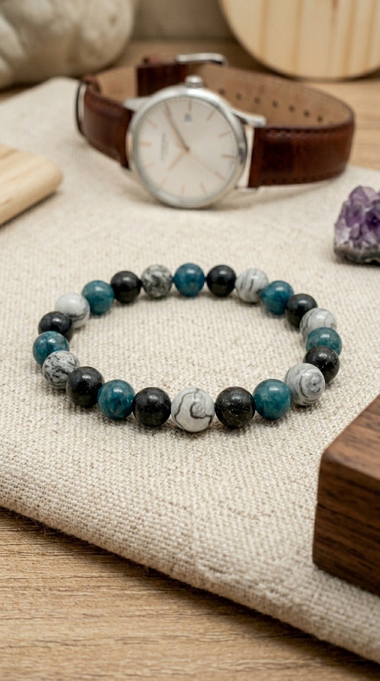 Bracelet Motivation et Courage en Pierres Naturelles, apatite et oeil de faucon