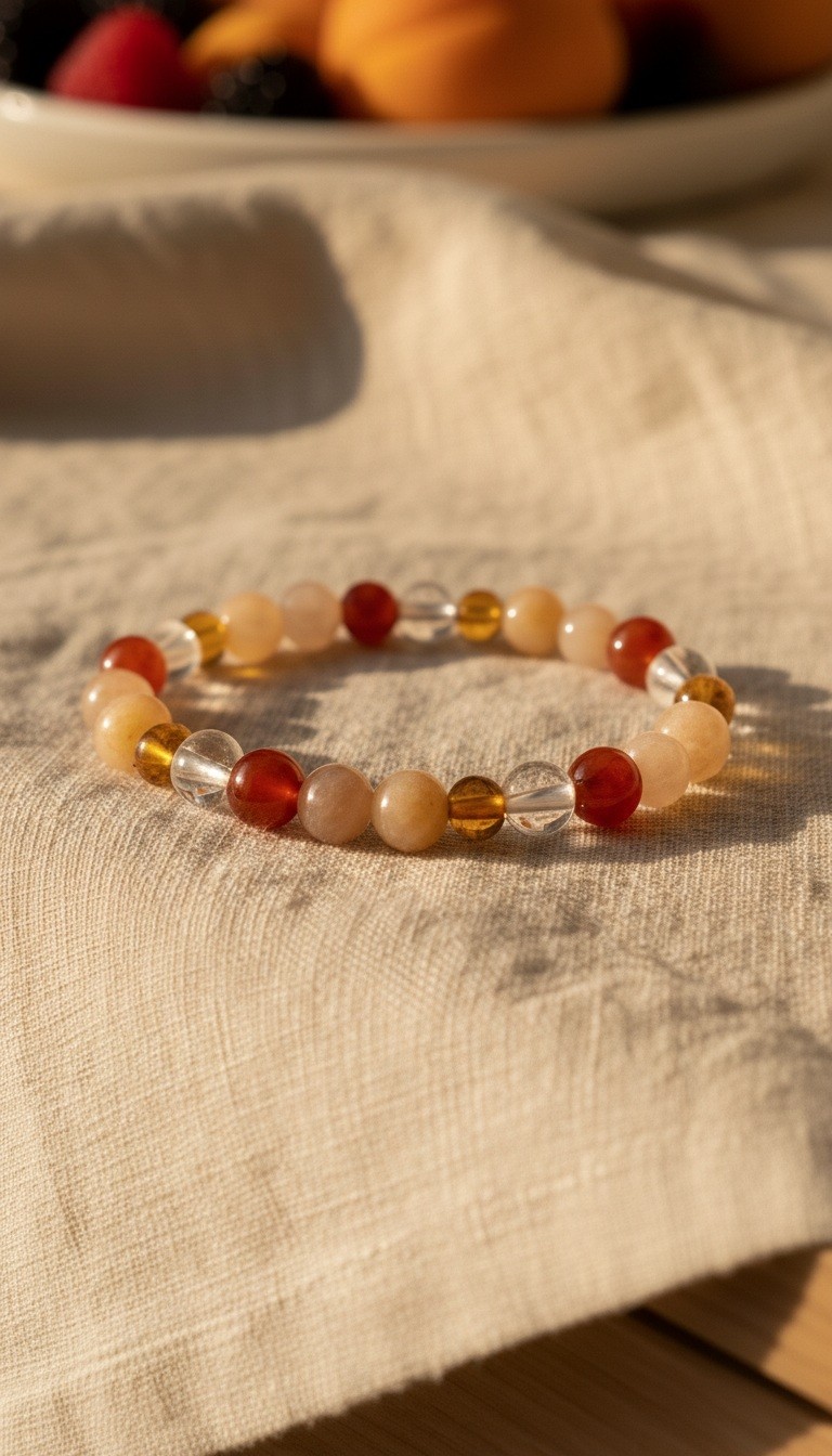 Imaginez porter sur vous la chaleur d'une fin de journée d'été. Ce bracelet aux tons chatoyants n'est pas qu'un bijou : c'est un véritable shoot d'optimisme conçu pour réveiller votre chakra sacré et booster votre moral, peu importe la saison.