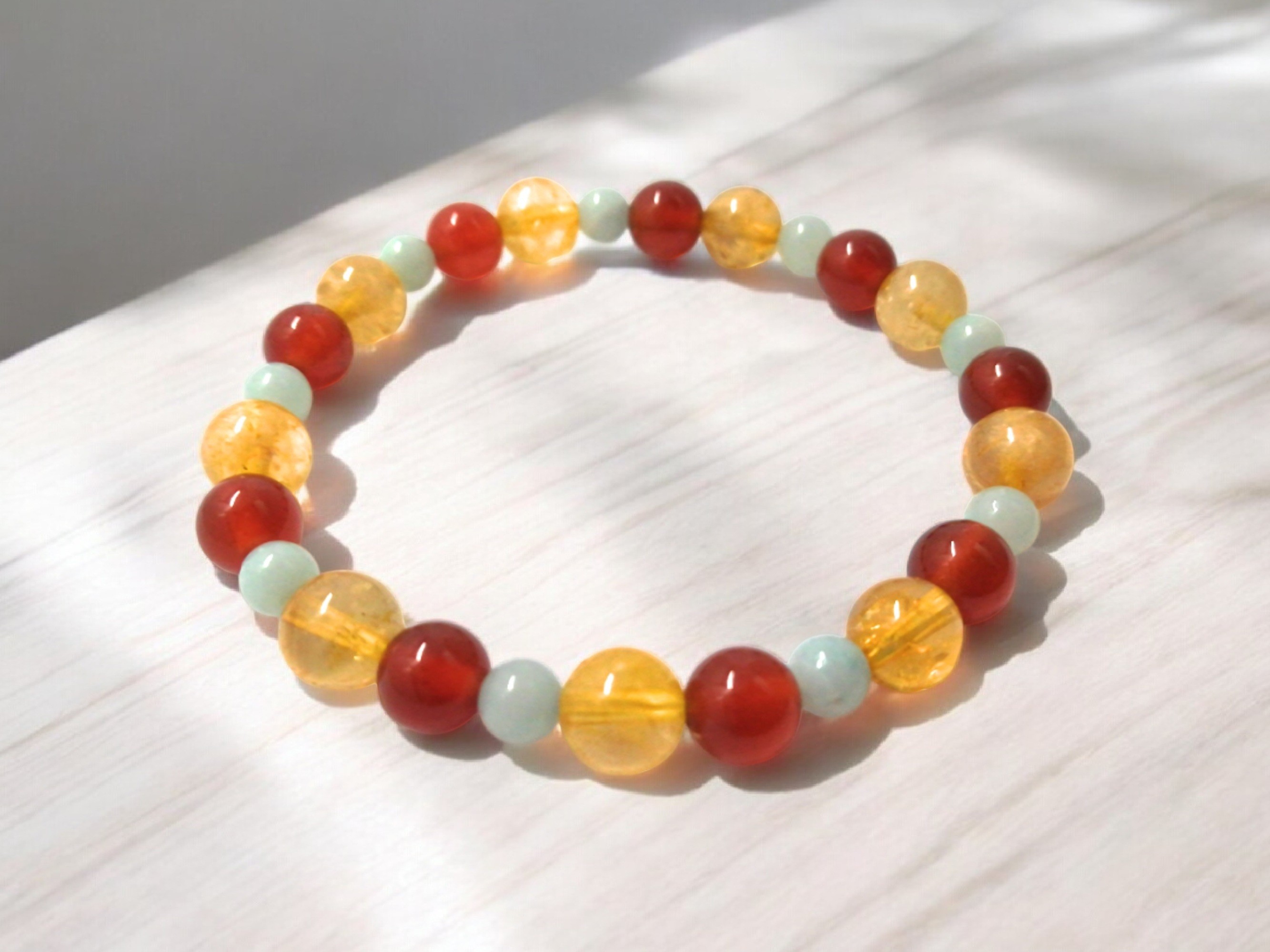 Pierres naturelles : citrine, cornaline et amazonite