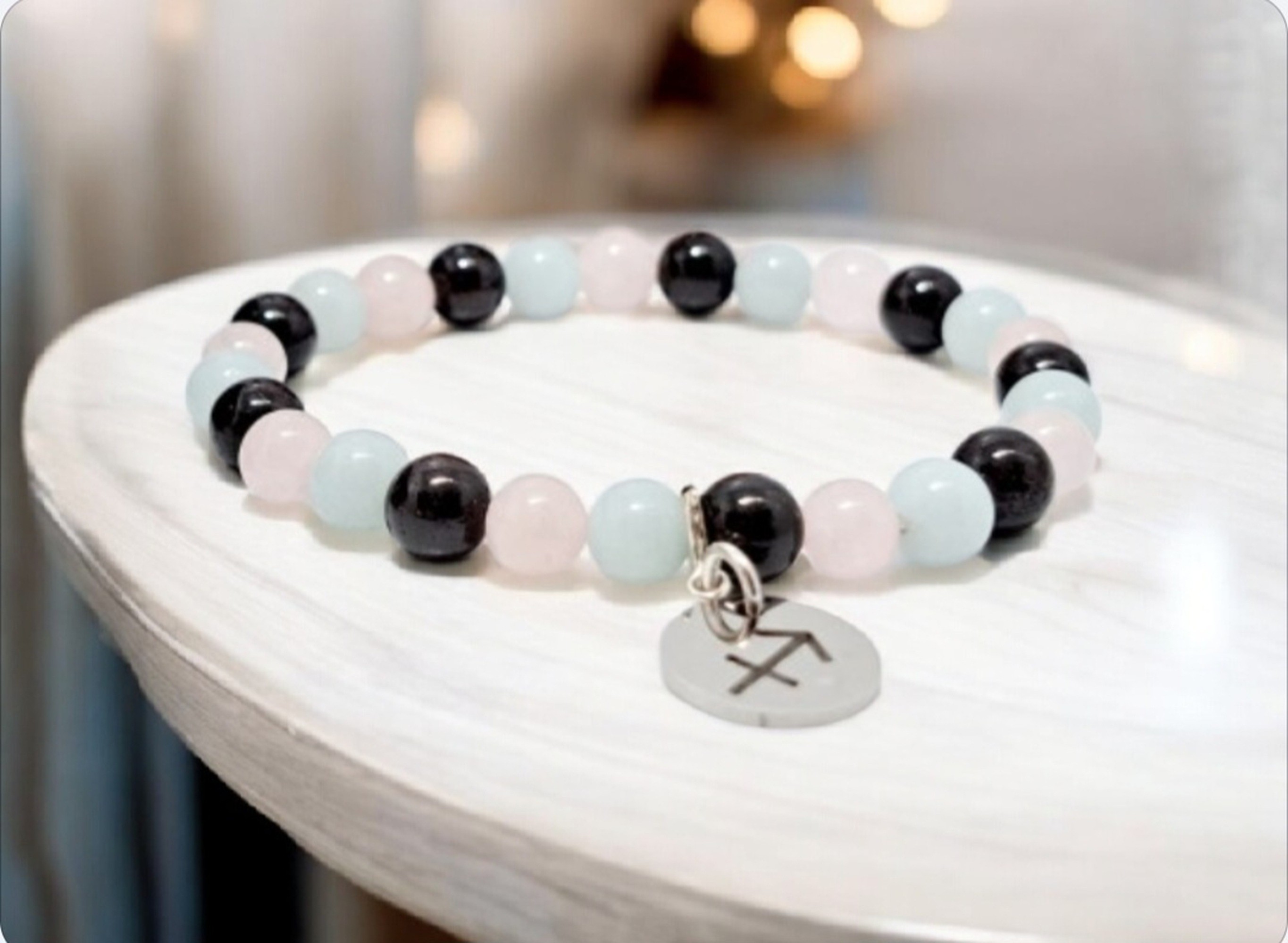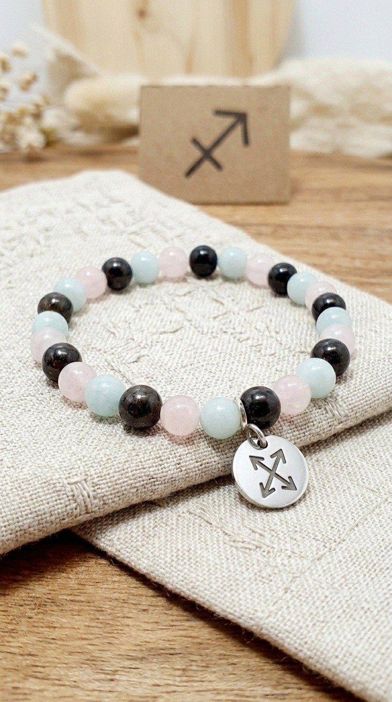 Bracelet astrologique sagittaire, pierres naturelles amazonite, quartz rose, grenat