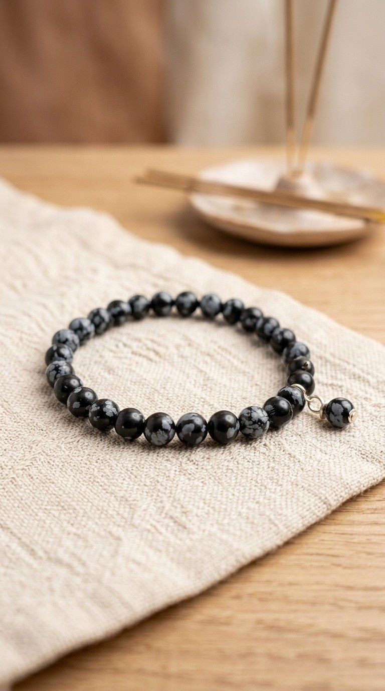 Je vous propose l'obsidienne flocon qui est plus douce à porter que l'obsidienne noire, sous forme de bracelet extensible en pierres naturelles de 6 ou de 8mm.
