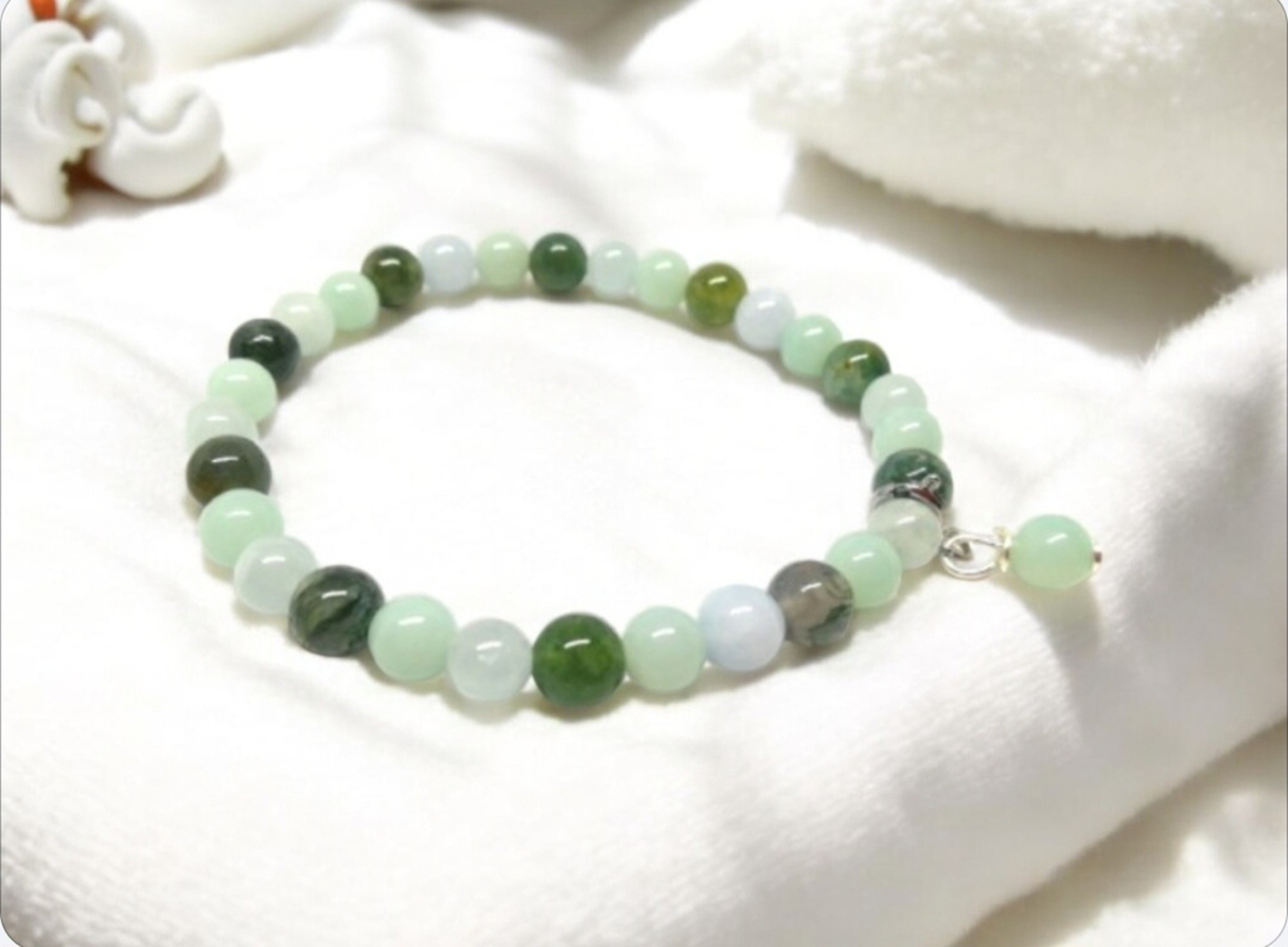 Le cycle recommence pour vous cette année et le bracelet qui associe l'agate mousse, l'aigue marine et l'amazonite vous accompagnera tout au long de l'année !