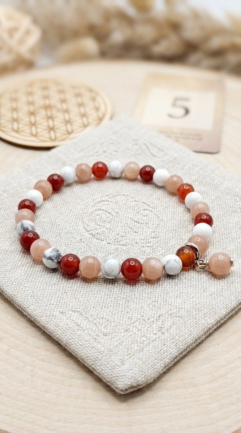 L'année 5 est une invitation à mordre la vie à pleines dents. C’est le moment de vous libérer de ce qui vous entrave. J'ai choisi ces pierres solaires pour qu'elles soient votre moteur. Chaque pierre étant unique, votre bracelet sera le reflet exclusif de votre nouvelle liberté en 2026.