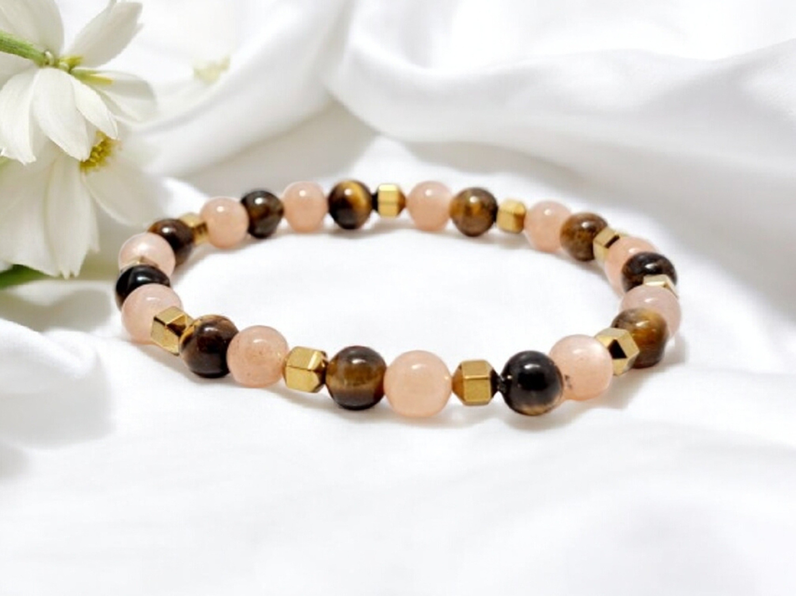 Bracelet Protection et Énergie en Pierres Naturelles - Œil de Tigre et Pierre de Soleil
