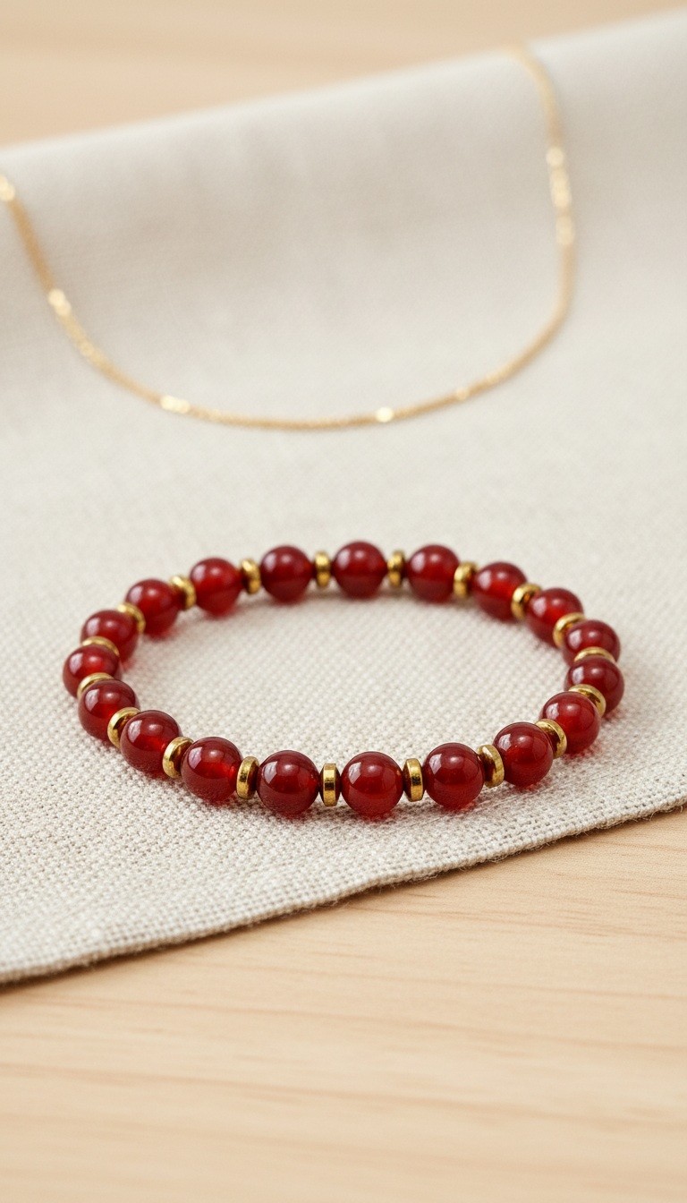 Hématite Dorée (Intercalaires 4mm) : Les petites perles d'Hématite dorée (4mm) contrastent magnifiquement avec la Cornaline. Ces intercalaires apportent une finition luxueuse et moderne, offrant un éclat tendance au bijou.