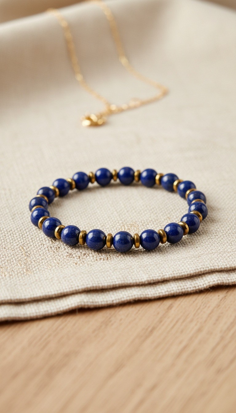 Bracelet en lapis lazuli, cadeau dame en pierres naturelles pour la créativité et l'intuition