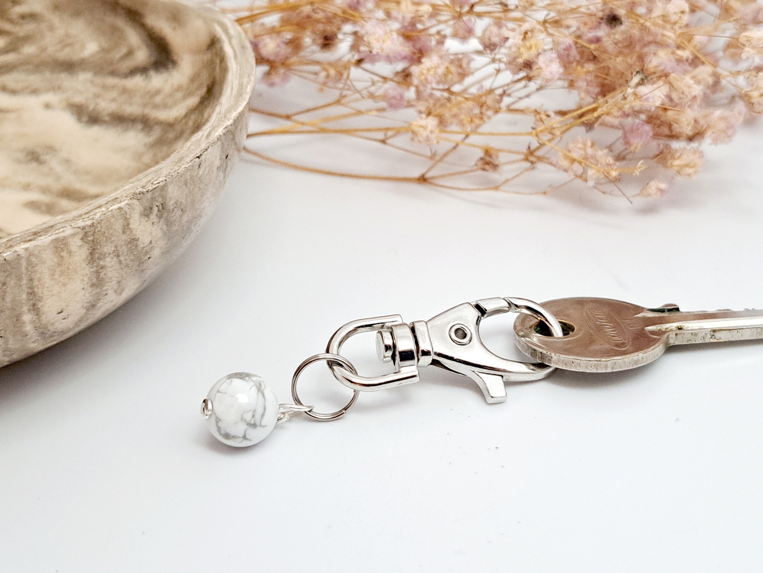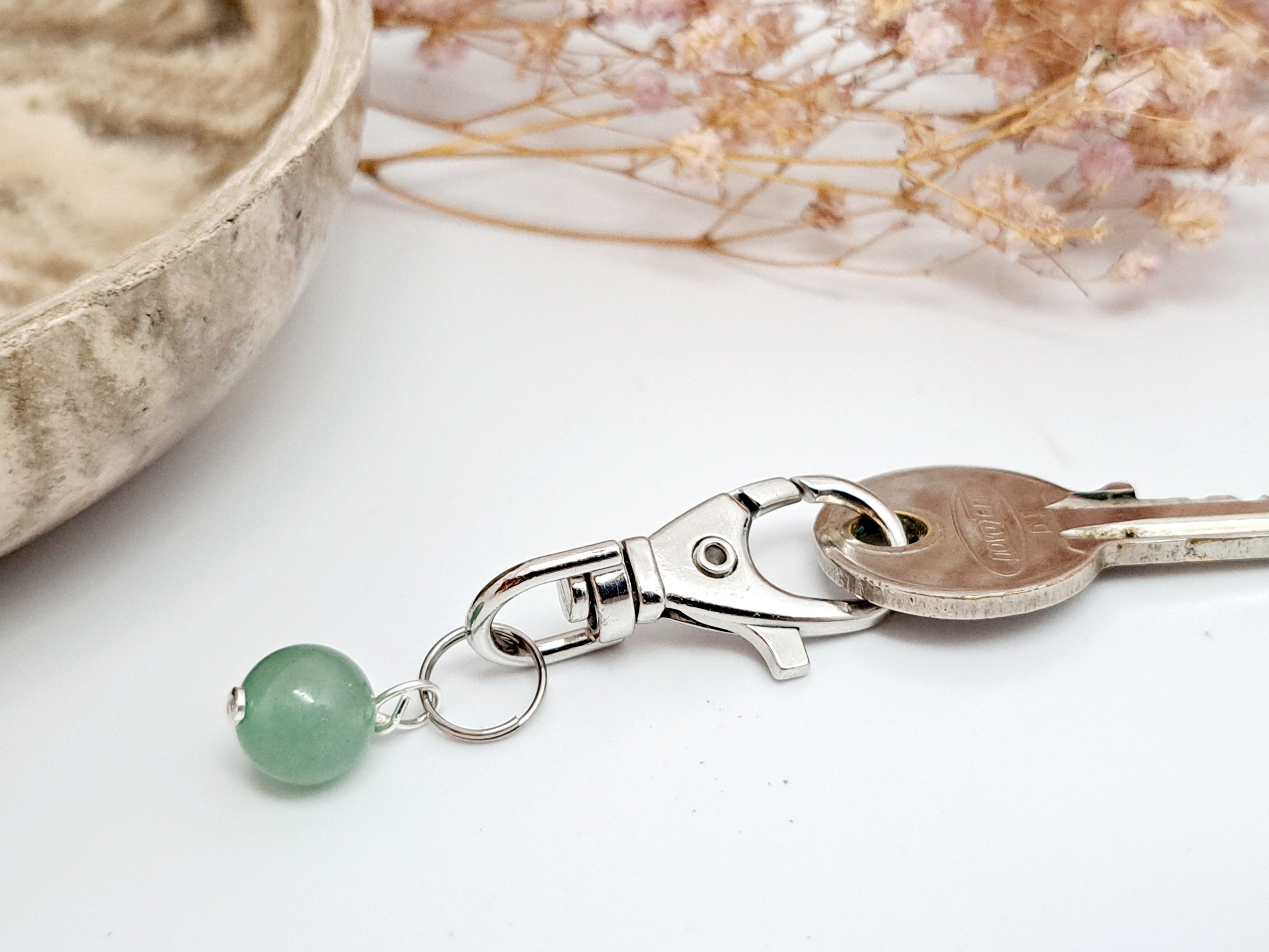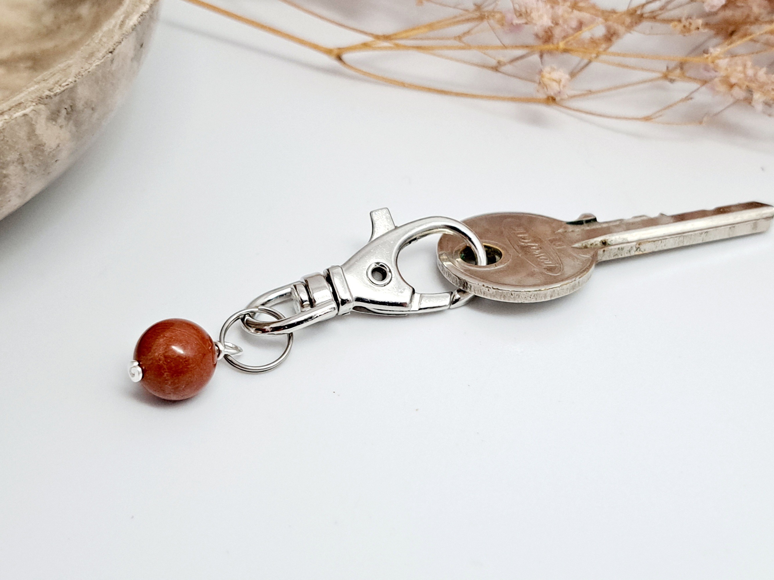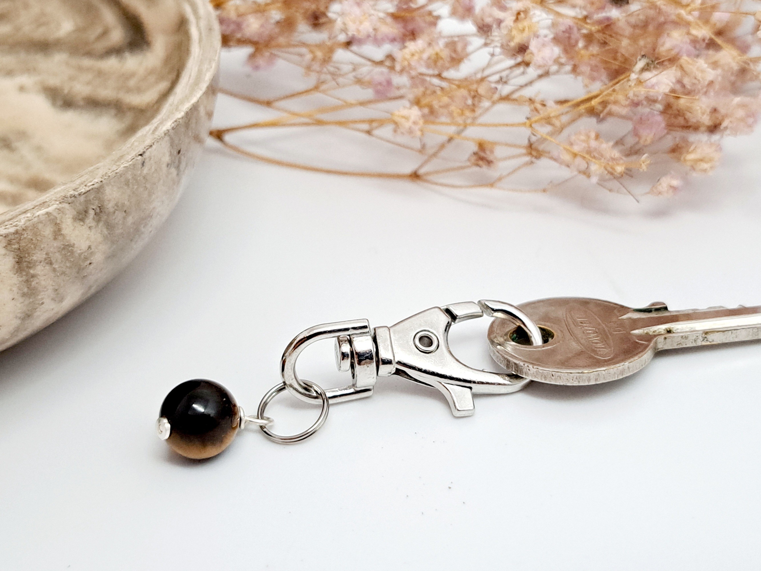 Matériaux de qualité : un mousqueton en acier robuste et une perle de 10 mm en pierre naturelle, sélectionnée pour sa beauté et ses vertus.