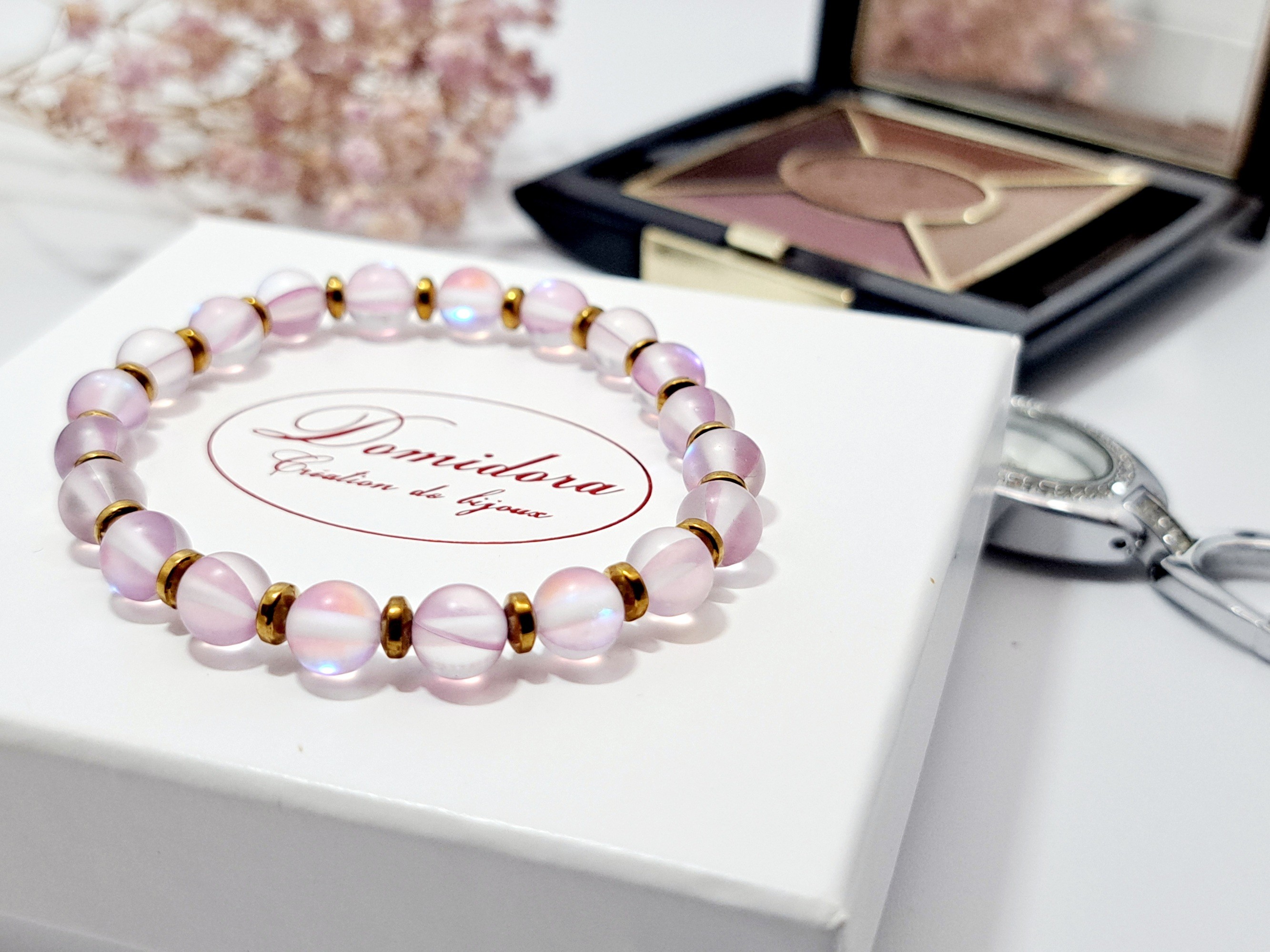 Bracelet dame en aqua aura rose, cadeau de Noël ou anniversaire