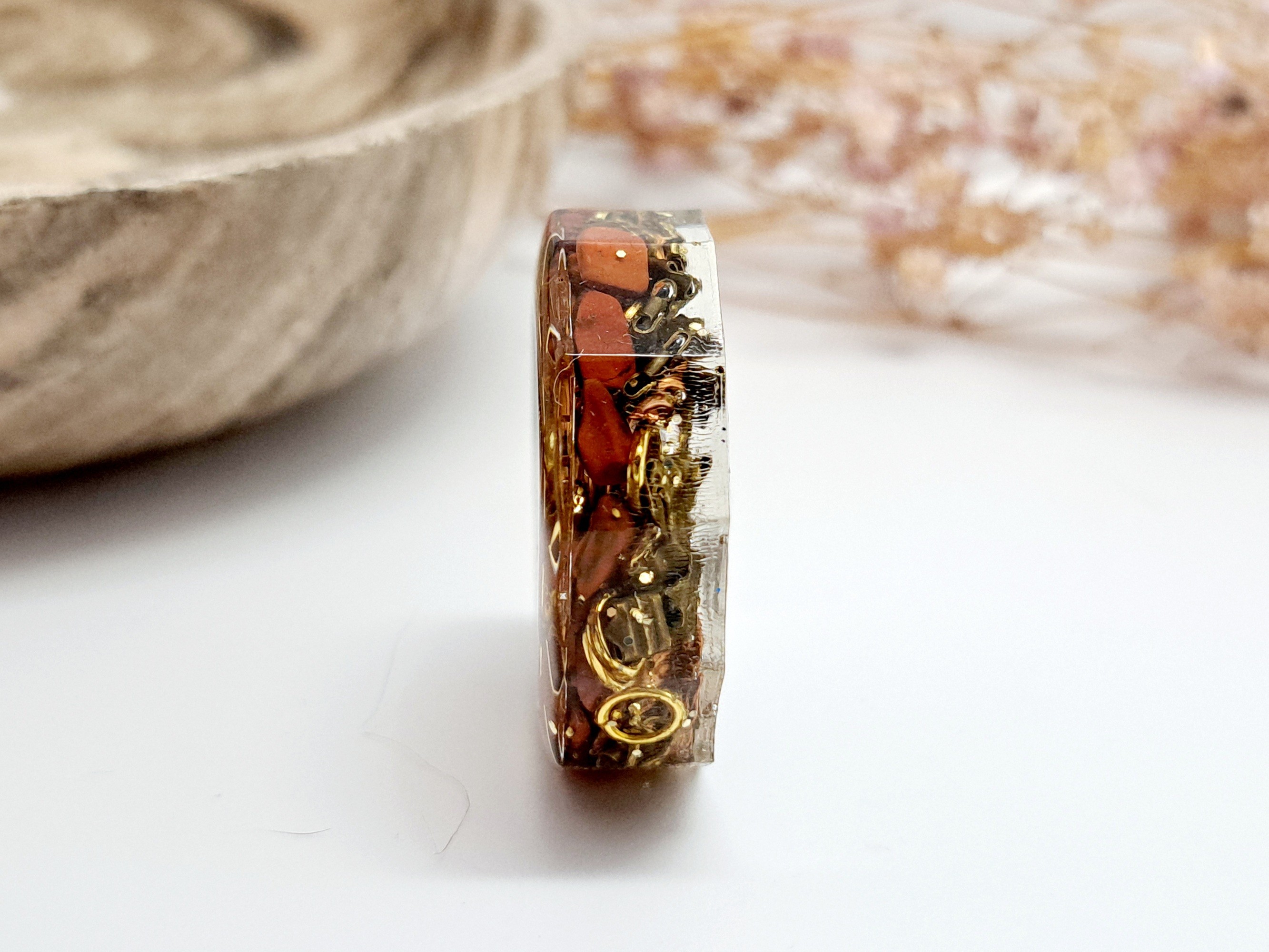 💎Façonnée à la main en résine, elle contient des copeaux de cuivre et des éclats de jaspe rouge, pierre de protection et d'ancrage