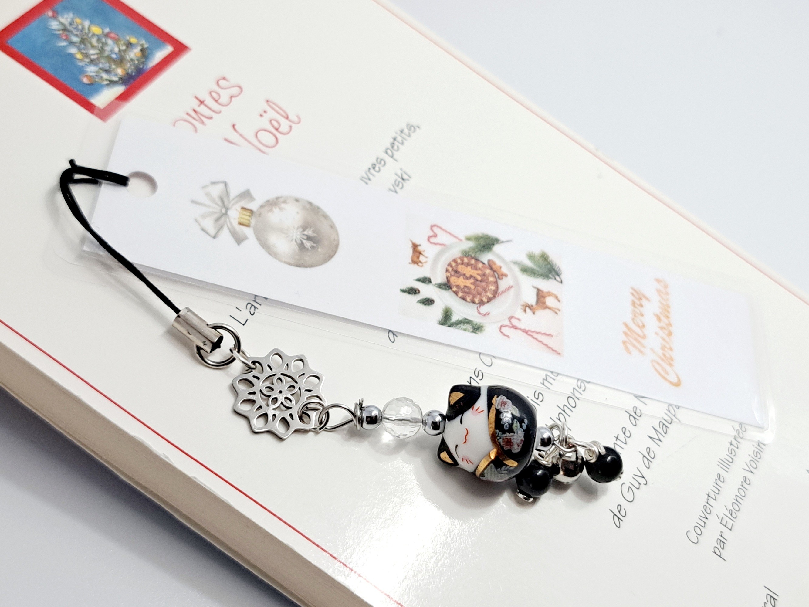 Marque page Chat Maneki Neko porte bonheur noir, édition limitée de Noël
