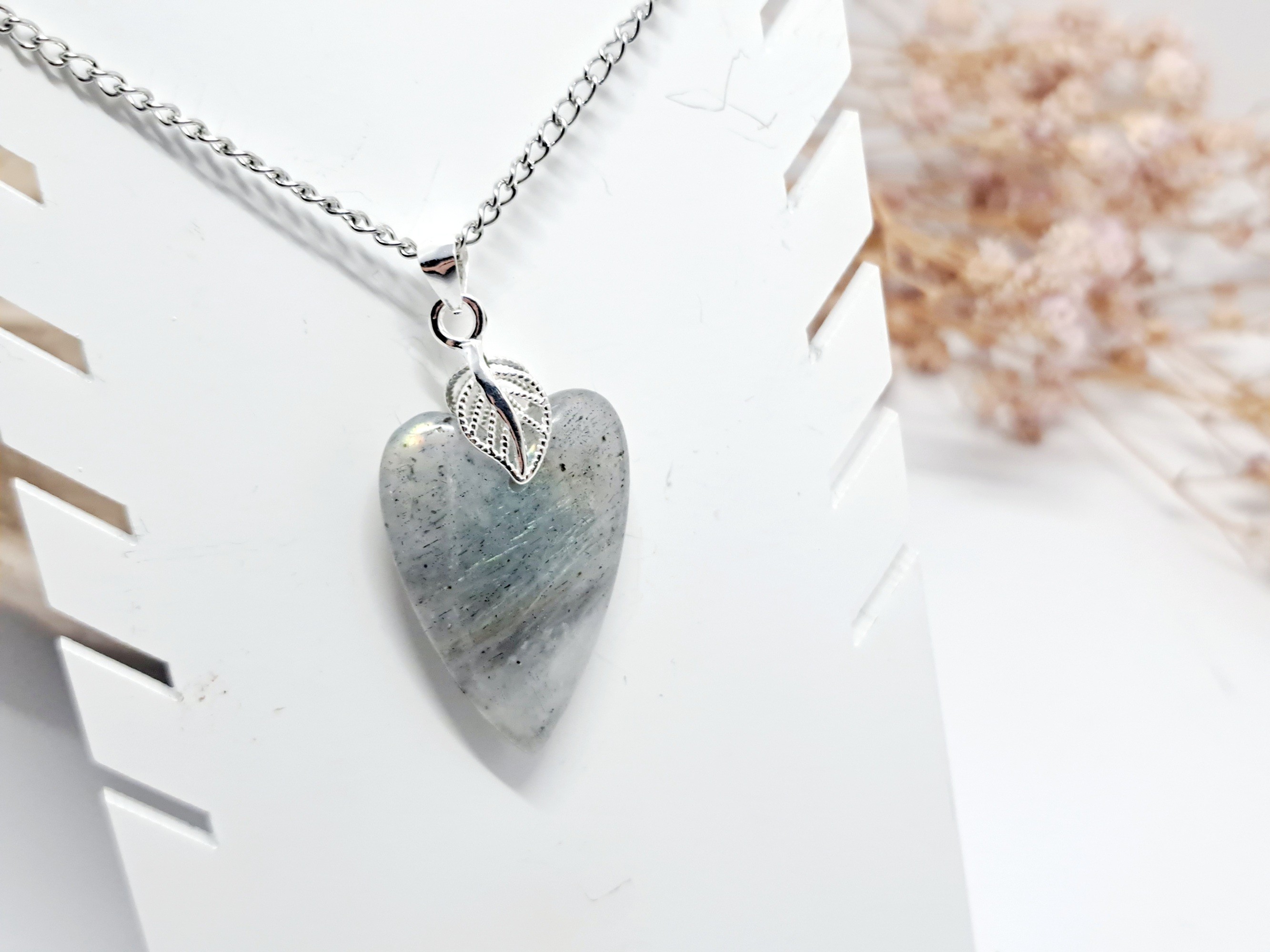 • Pierre : Labradorite naturelle de haute qualité (forme cœur)