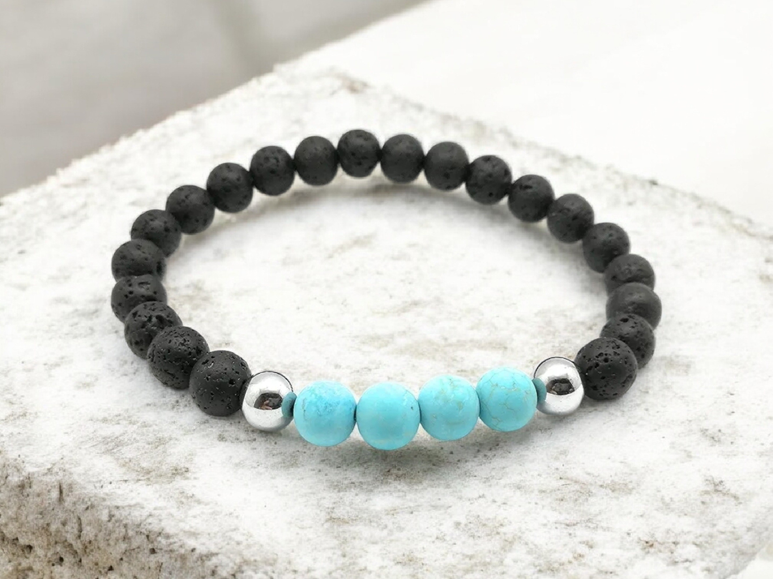 Bracelet Turquoise et Pierres de Lave, Pierres Naturelles pour Bracelet Homme