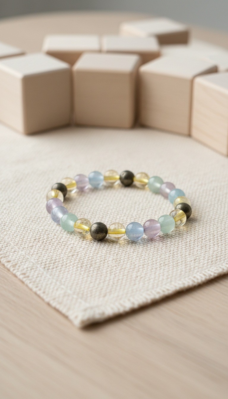 Bracelet concentration Enfant, Citrine, Fluorine et Pyrite, pierres naturelles