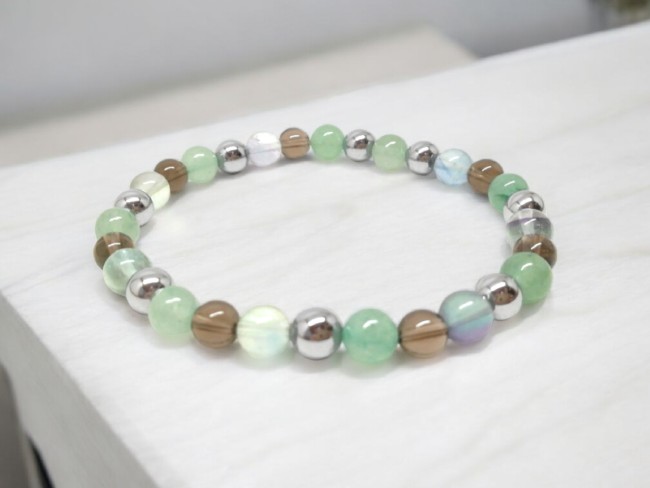 Ce bracelet en pierres naturelles est très féminin et sera un cadeau idéal pour une amie, une soeur, une collègue... mais il convient aussi très bien pour un homme car ses couleurs sont malgré tout assez neutres.