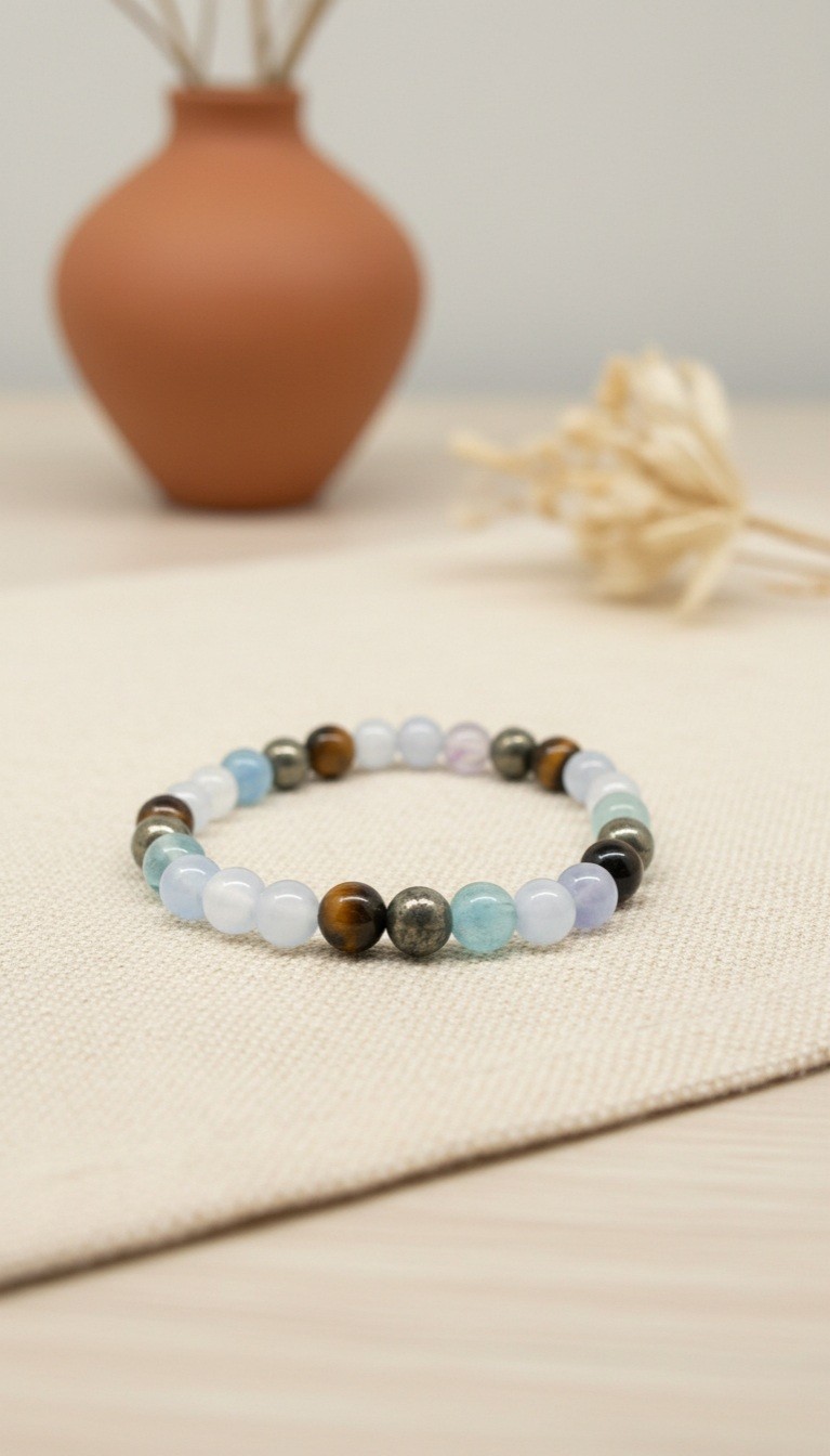 Bracelet concentration enfant en Calcedoine, Fluorine et Pyrite, Pierres naturelles Cadeau Enfant, Domidora
