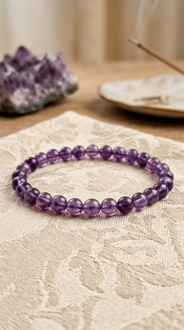 ?L'améthyste est associée à la connection spirituelle, à la méditation, à la sérénité et à la guérison.