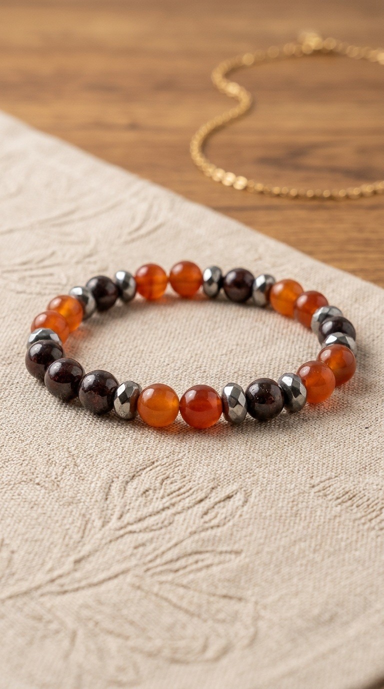 Bracelet Cornaline et Grenat, Pierres Naturelles pour la circulation sanguine, la fatigue, cadeau pour elle, domidora