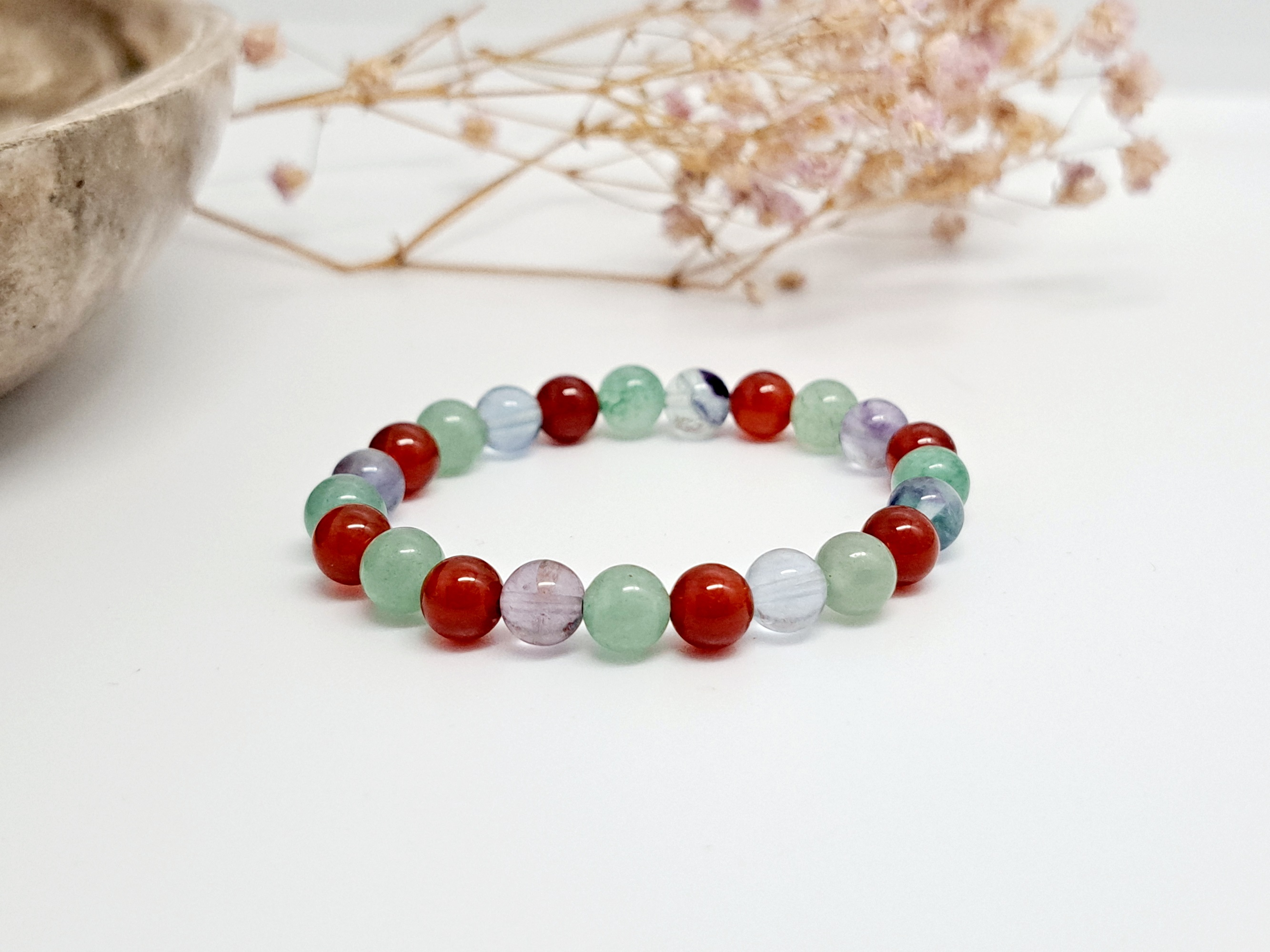 Bracelet Confiance en Soi Enfant, Amazonite, calcite et quartz rose en Pierres Naturelles