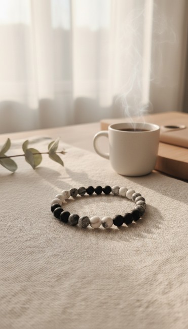 Bracelet Équilibre et Sérénité en Pierres Naturelles - Duo Howlite et Onyx