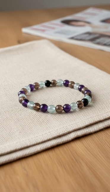 Bracelet Quartz Fumé, Améthyste et Fluorine, Pierres Naturelles boulimie et troubles alimentaires