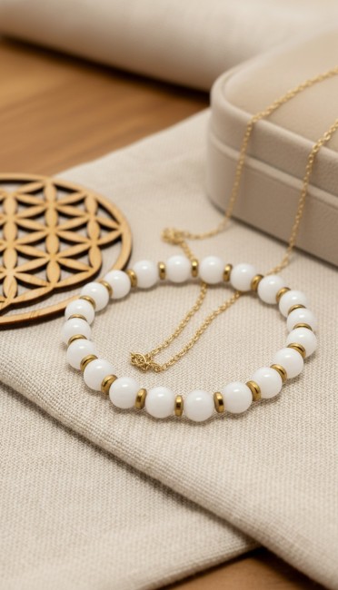 Bracelet Calcite et Howlite, Bracelet Pierres Naturelles , Cadeau pour elle, Domidora