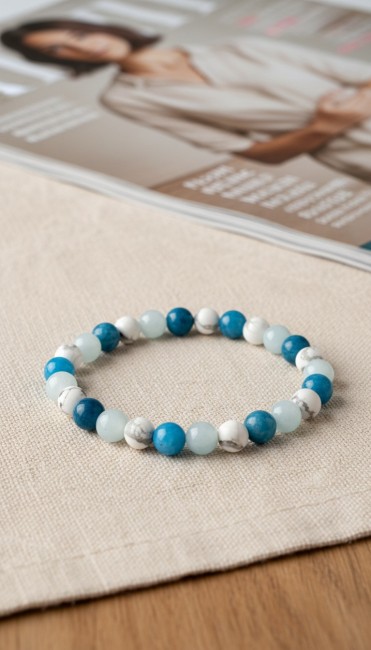 Bracelet perte de poids en Apatite, Amazonite et Howlite, Pierres Naturelles Femme, Cadeau Domidora