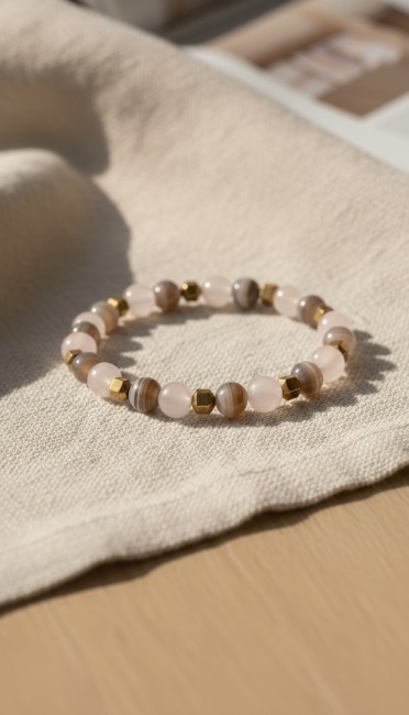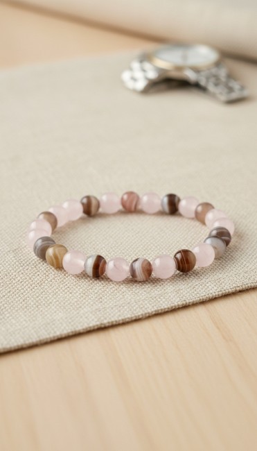 Bracelet Réconfort et Énergies Douces en Pierres Naturelles - Quartz Rose et Agate du Botswana