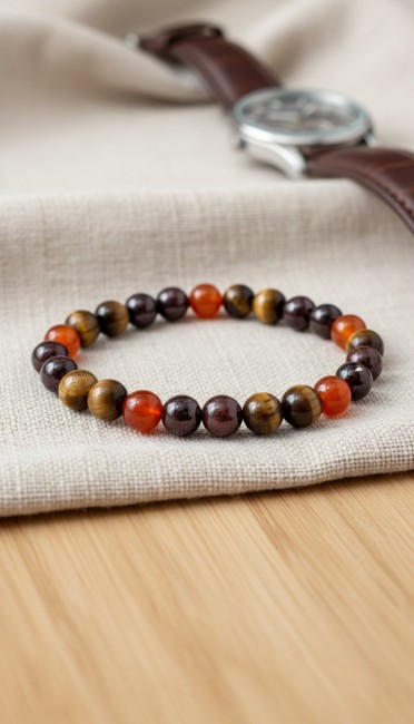 Bracelet Fatigue Grenat ,Cornaline et Oeil de Tigre, Pierres Naturelles, Cadeau Unisexe pour la Motivation