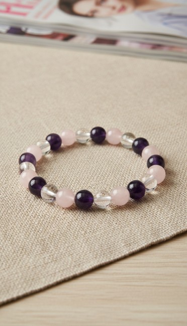 Bracelet "Triangle d'Or" en Pierres Naturelles - Améthyste, Quartz Rose et Cristal de Roche