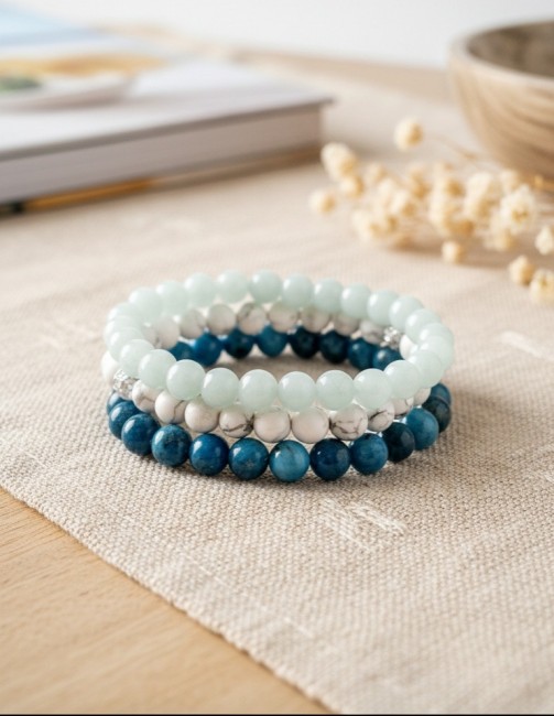 Trio de Bracelets Harmonie et Silhouette en Pierres Naturelles - Apatite et Howlite