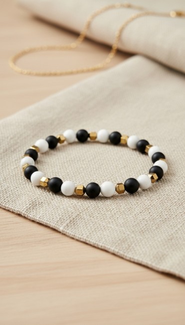 Bracelet Onyx et Howlite, Bracelet Pierres Unisexe, Cadeau en Pierres Naturelles