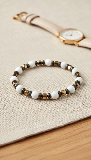 Bracelet gris et blanc en howlite et hématite pour cadeau amitié ou anniversaire