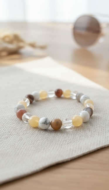 Bracelet bonnes résolutions en pierre soleil et agate Botswana, pierres naturelles